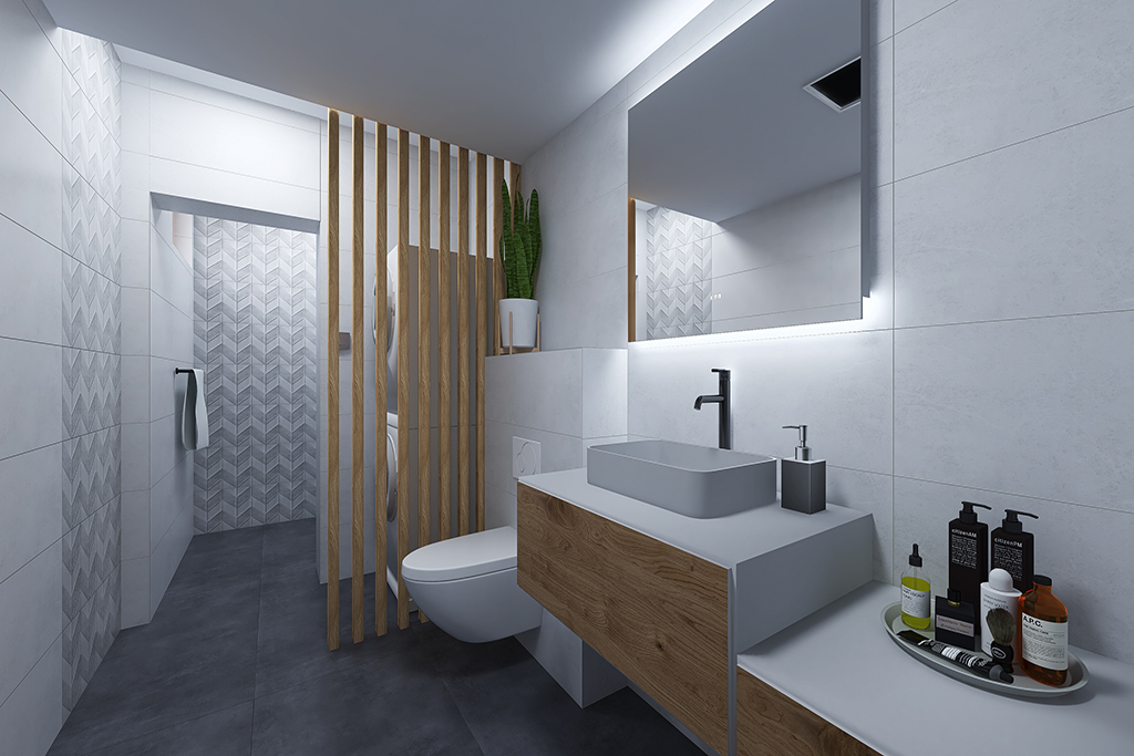 Kad smo kretali u adaptaciju kupaonice, računali smo da imamo još nekoliko mjeseci za sve detaljno isplanirati. Nažalost, ili na sreću, majstorima se promijenio raspored, te smo početak radova, umjesto dva mjeseca, čekali dva tjedna. U tom trenutku nismo imali jasnu predodžbu o tome što želimo. Srećom, stupila sam u kontakt s Anom, koja se praktički istu večer bacila na dizajn. U vrlo kratkom roku nam je složila odlično rješenje. Posebno nam je pomogla s tehničkim detaljima kao što su dimenzije pločica (usklađenost zidnih i podnih, te sve skupa u prostoru), podnim grijanjem, traženjem konkretne staklene stijene, kupaonskih ormarića, rasvjete, ogledala... S obzirom na posao, malu djecu, radove u tijeku, nismo mogli trošiti puno vremena na obilazak trgovina. Ana je za nas zvala trgovine, provjeravala dostupnost artikala, rokove dostave i slično. Na nama je bilo samo da dođemo u trgovinu, uživo pogledamo artikle i kupimo ih. Bez nje bi nam adaptacija bila nemjerljivo stresnija, te sigurno ne bismo uspjeli dobiti tako dobar rezultat.