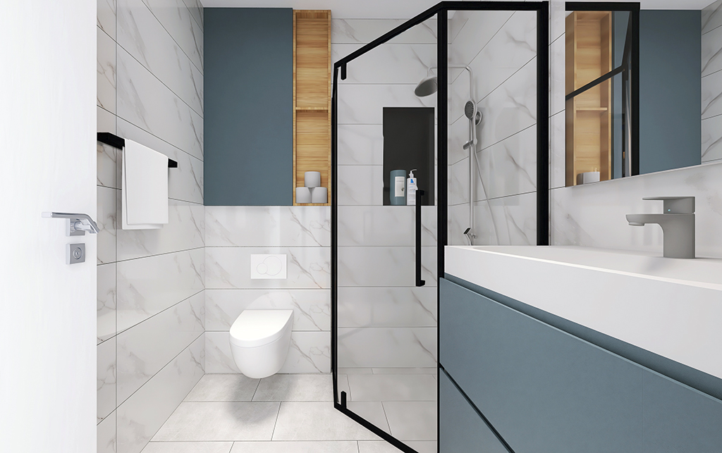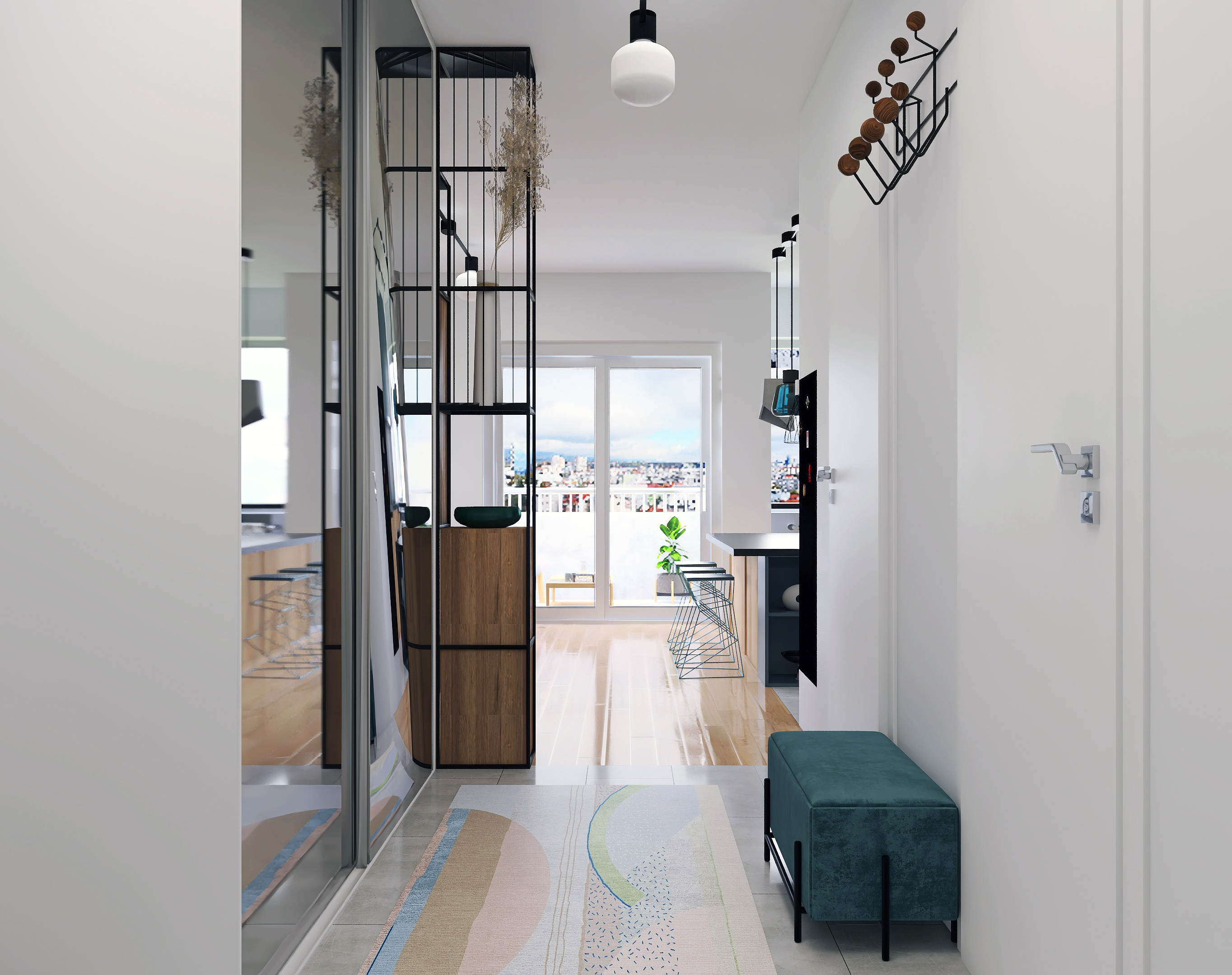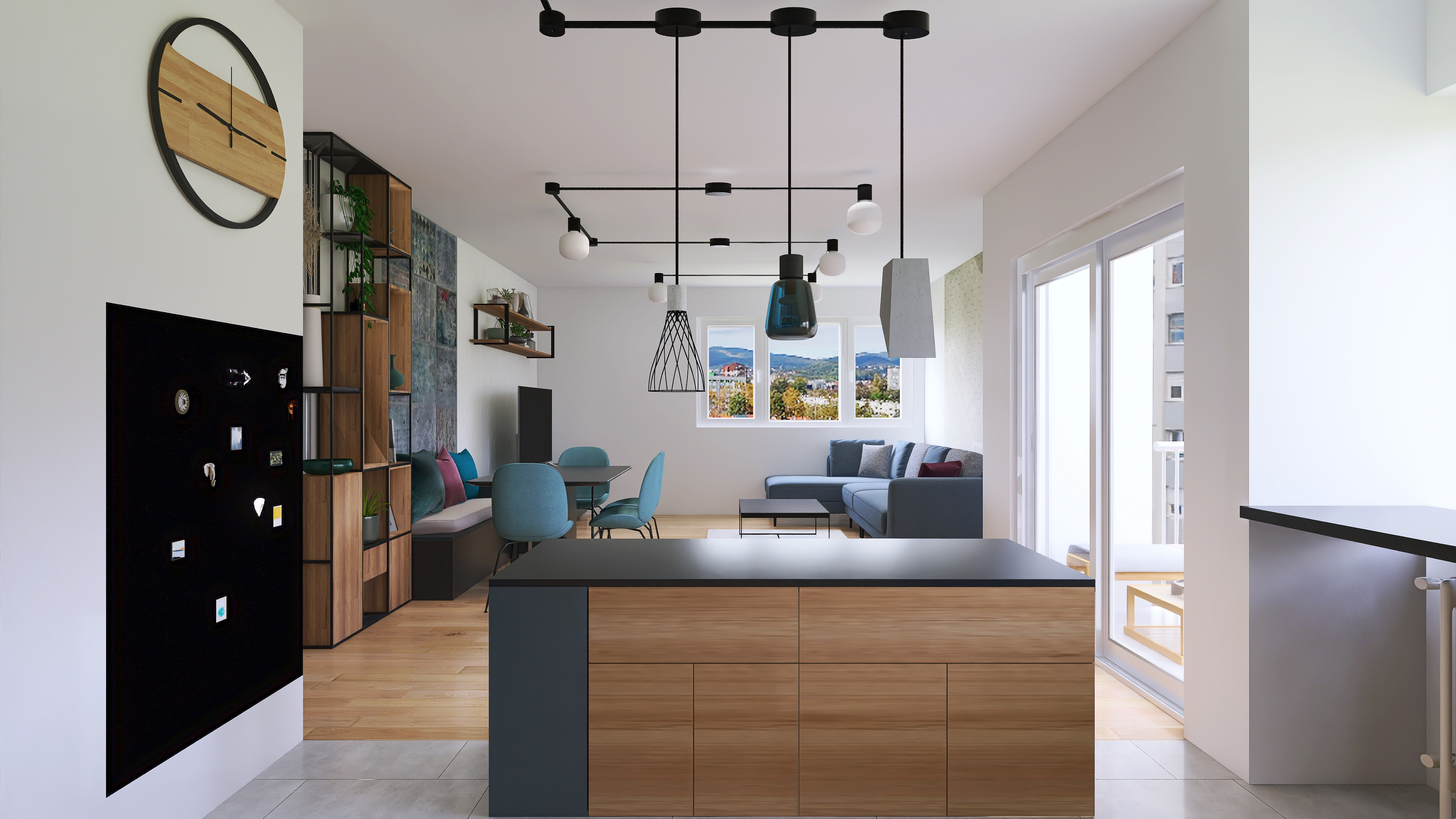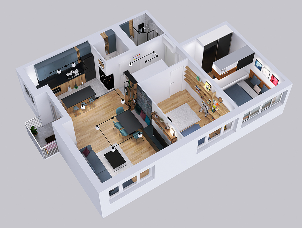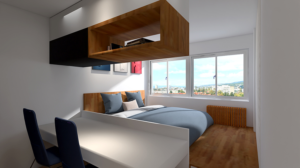Stan je zadržao dvije spavaće sobe, s manjim pomicanjima i uklanjanjem zidova dobio se veliki otvoreni dnevni dio s kuhinjom. U budućnosti moguće je dobiti treću spavaću sobu s manjim potrebnim preinakama. Izvedene su dvije kupaonice, jedna s tušem i školjkom, druga sa školjkom i perilicom rublja čime je znatno podignuta kvaliteta života u stanu. S obzirom da se stan nalazi na 9om katu nebodera, pogledi kroz prozore su najljepša dekoracija u svim godišnjim dobima.