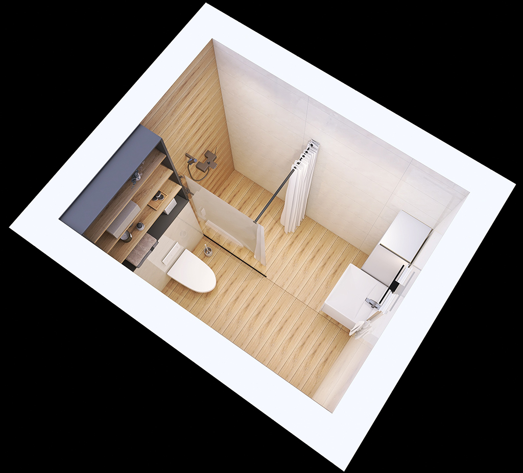 Potpuna renovacija kupaonice od svega 4m2 u koju je bilo potrebno integrirati walk-in tuš, ugradbenu wc školjku te element s umivaonikom kao i visoki ormarić.