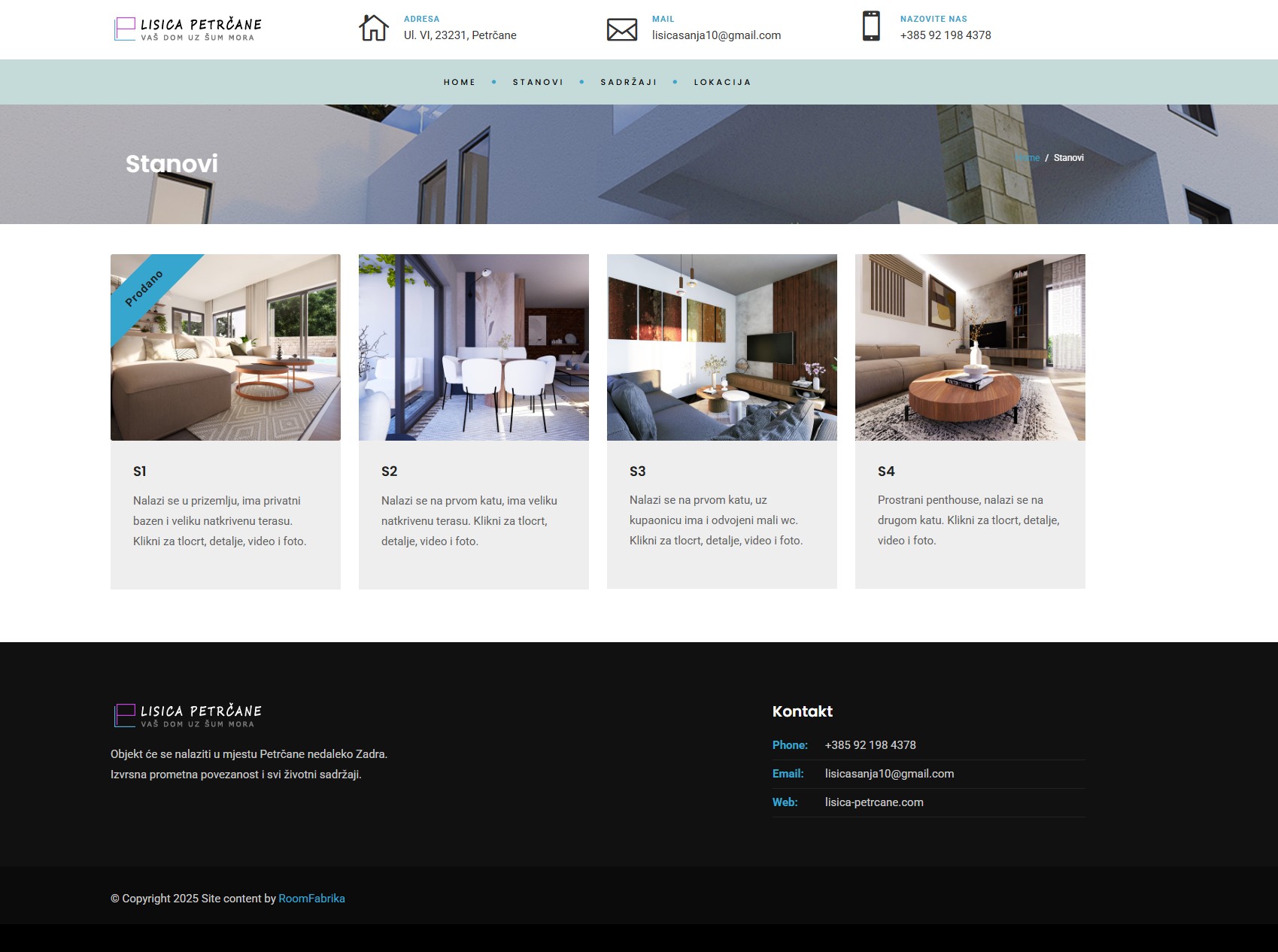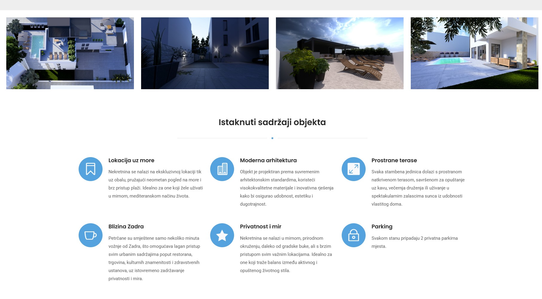 Ova usluga upotpunjava izradu video i/ili foto materijala prostora za prodaju u sveobuhvatni paket. Omogućava izradu jednostavne, funkcionalne i vizualno privlačne web stranice koja će služiti kao centralizirani prostor za pohranu i organizaciju video i foto materijala, praktično, služi prodavatelju kao posjetnica nekretnine koju prodaje. Cilj joj je lako dijeljenje različitih multimedijalnih sadržaja zainteresiranim klijentima bez potrebe za naprednim funkcijama kao što su SEO optimizacija ili korištenje kolačića (cookies). Duljina trajanja hostinga ovakvog web mjesta obično iznosi jednu do dvije godine, ovisno o završetku prodaje svih jedinica.